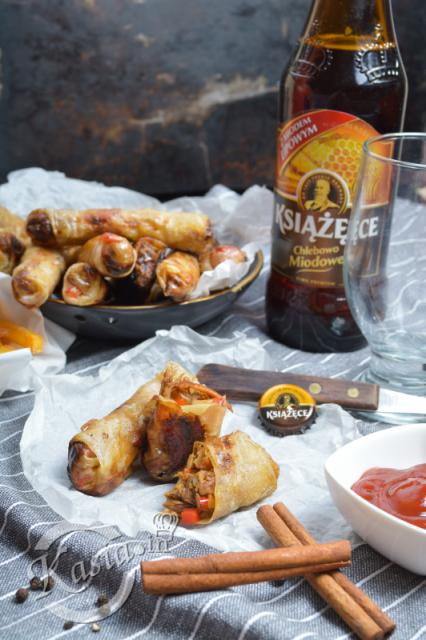 Jak zastanawiałam się co tu z nim ugotować, Jacek śmiał się, że nie ma co się zastanawiać i marnować, najlepiej będzie je zwyczajnie wypić :). Jednak jak zjadł przygotowane przeze mnie spring rollsy z wołowiną przyznał, że piwo się nie zmarnowało, nie mogliśmy się od nich oderwać.